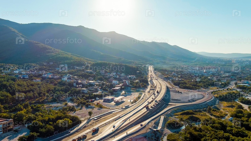 Геленджик, Россия. Строящаяся развязка на трассе М4 «Дон», вид с воздуха