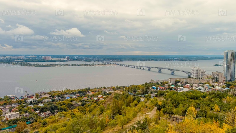Саратов, Россия. Саратовский мост через Волгу, вид с воздуха