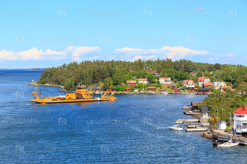 Автомобильный паром. Ботнический залив. Берега островов, принадлежащих Финляндии
