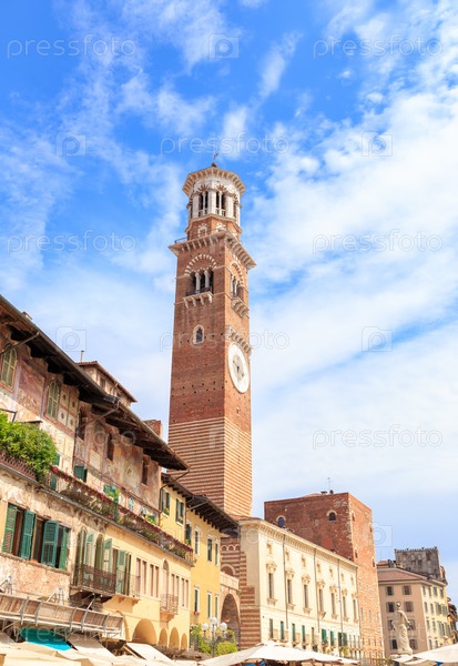 Верона, Италия. Торре деи Ламберти. - Башня Ламберти - высокая башня 84. Строительство башни было начато в 1172 году. Часы были добавлены в 1779 году
