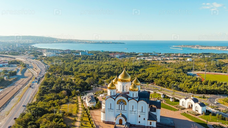 Геленджик, Россия. Собор Андрея Первозванного. Андреевский парк, вид с воздуха