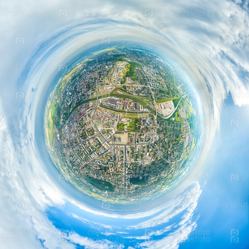 Тула, Россия. Исторический центр с Кремлем. Панорама города. Лето. 360-градусный панорамный астероид