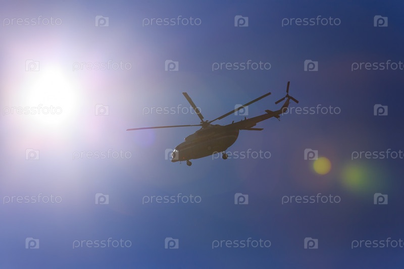 Вертолет в подсветке от солнца. Блики