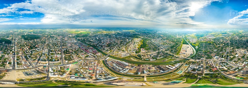 Тула, Россия. Исторический центр с Кремлем. Панорама города. Лето. Панорама 360. Вид с воздуха