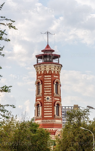 Пожарная башня. 19 век. Здание первой пожарной части в городе Царицын. Россия, Волгоград