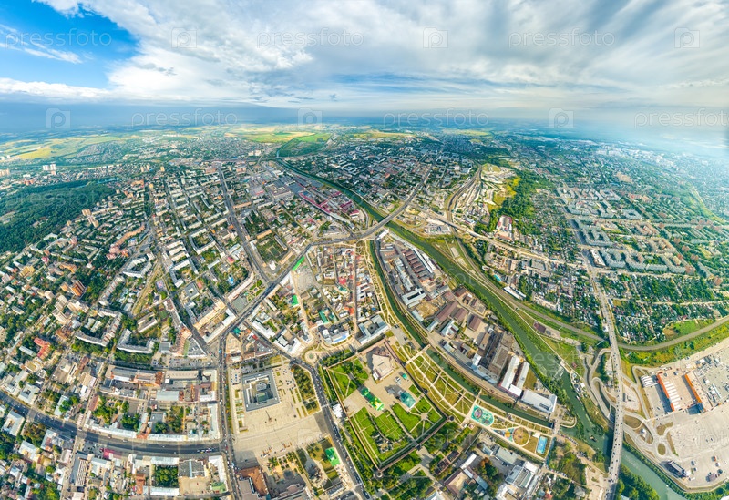 Тула, Россия. Исторический центр с Кремлем. Панорама города. Лето. С высоты птичьего полета