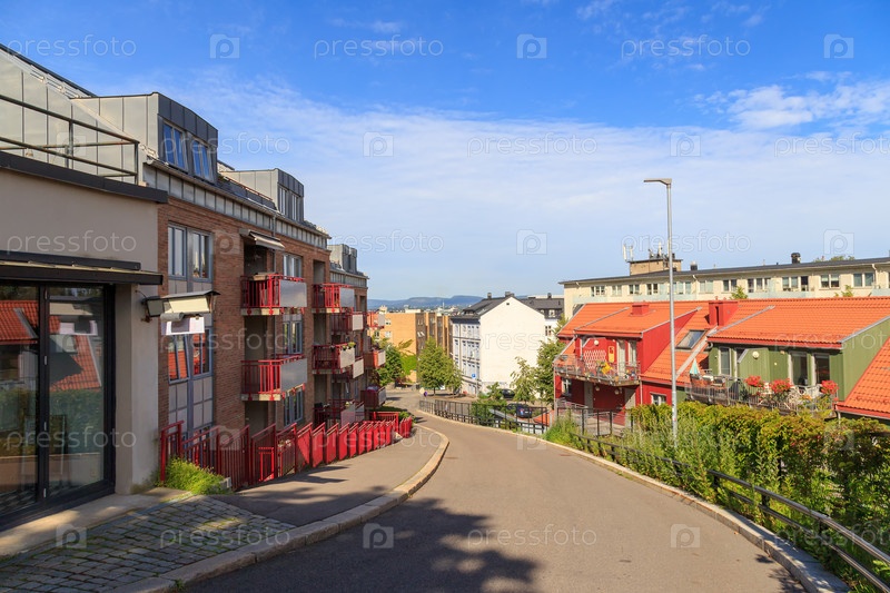Осло, Норвегия, улица на склоне холма недалеко от Экебергскрентена