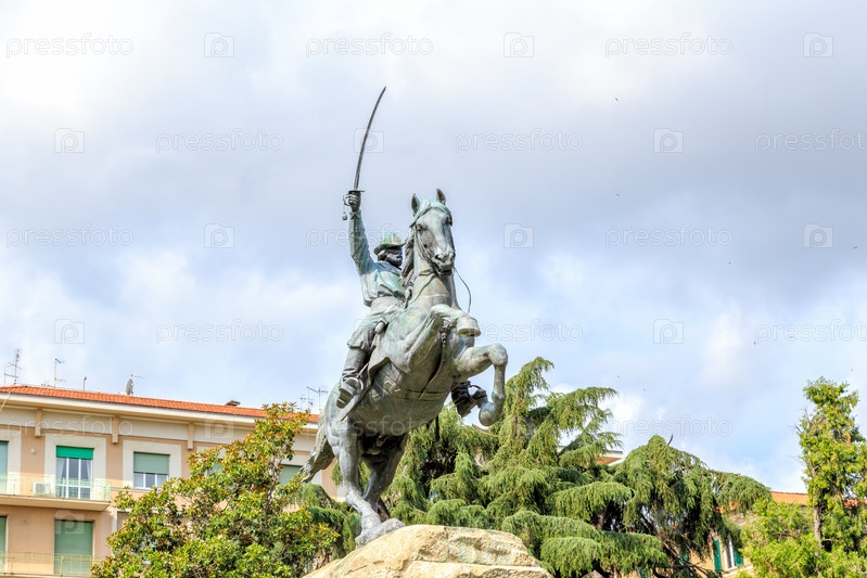 Ла Специя, Италия. Конный памятник Памятник Джузеппе Гарибальди, созданный Антонио Гарелла (1862 - 1919)