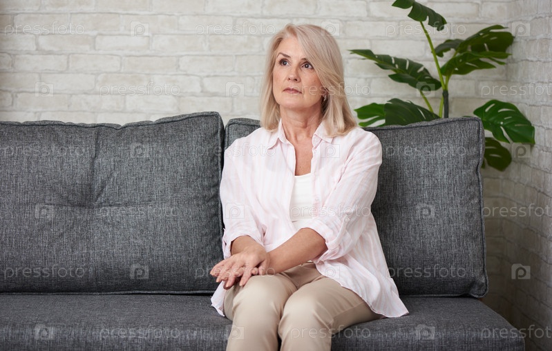 Портрет пожилой женщины. Старушка сидит дома на диване