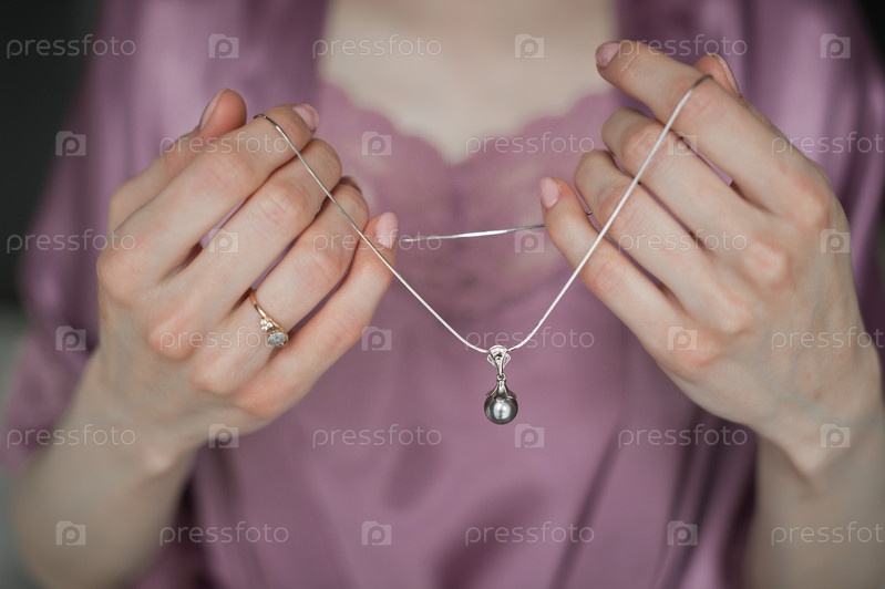 Изящное маленькое колье в руках девушки