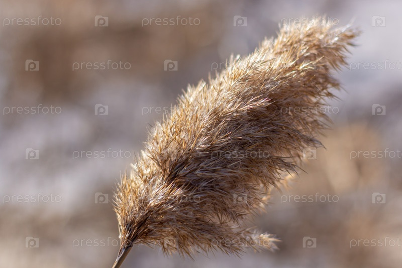 Сухой тростник на открытом воздухе в светлых пастельных тонах. Бежевый тростник, пампасная трава. Абстрактный естественный фон. Красивый рисунок в нейтральных тонах. Минималистичный, стильный, модный