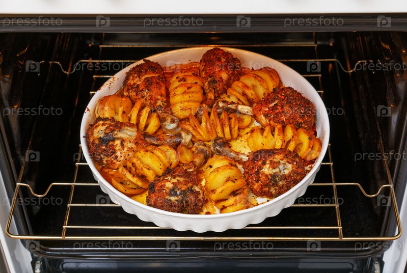 Пряные куриные ножки и картофель, запеченный в духовке