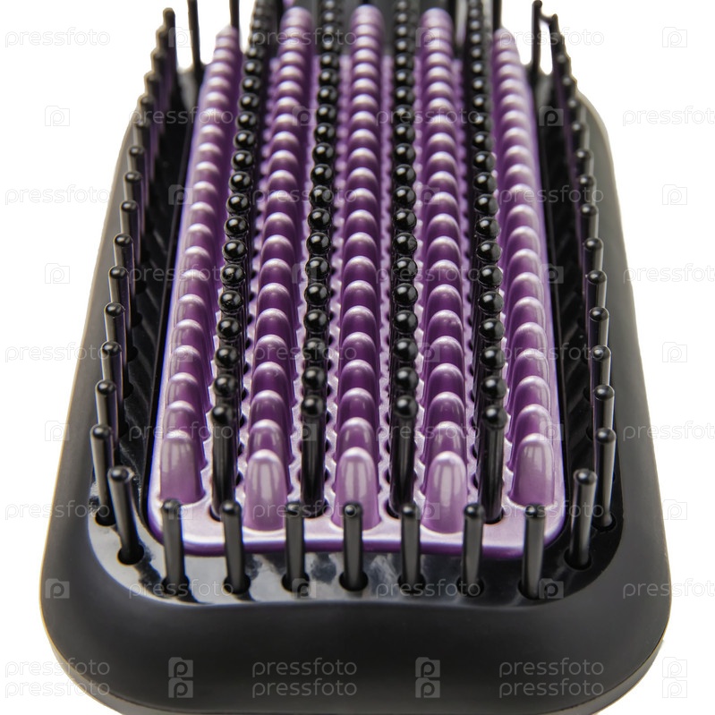 Черная электрическая термощетка для выпрямления волос с фиолетовым керамическим покрытием, изолированная на белом фоне