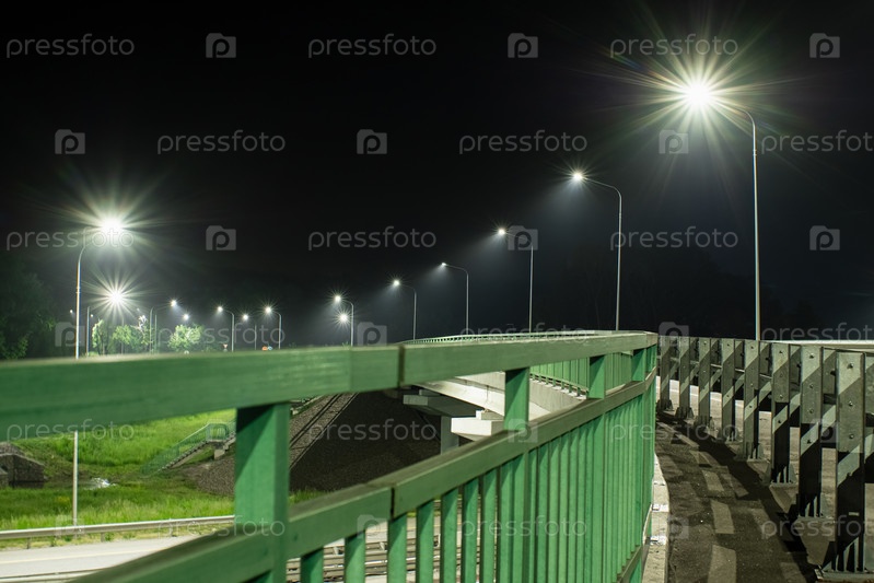 Зеленые заборы и ухаб пригородной развязки меняются в свете уличных фонарей