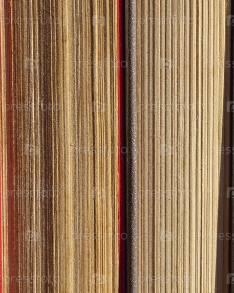 Фоновая текстура пожелтевшей бумаги. Макро закрытые книги с текстурой кончиков листьев