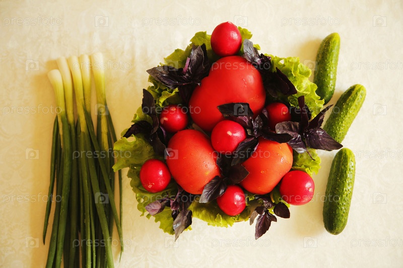 Овощи и зелень на столе