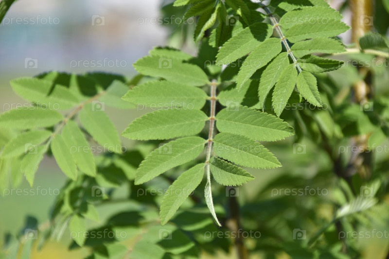 Зеленые листья рябины закрываются летом