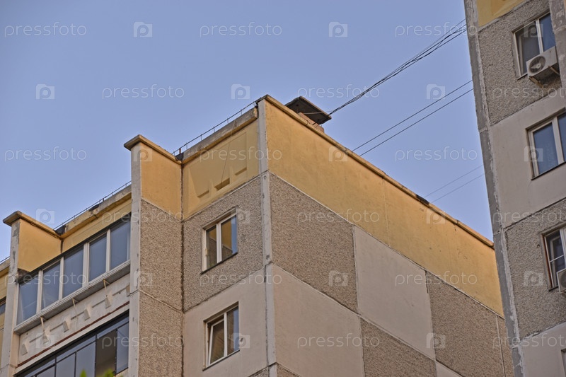 Панельные серые дома в городе крупным планом