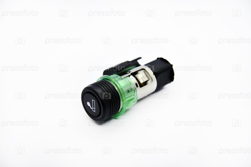 Прикуриватель с зеленой подсветкой. Запчасть для автомобиля. Электрический прикуриватель разбирается