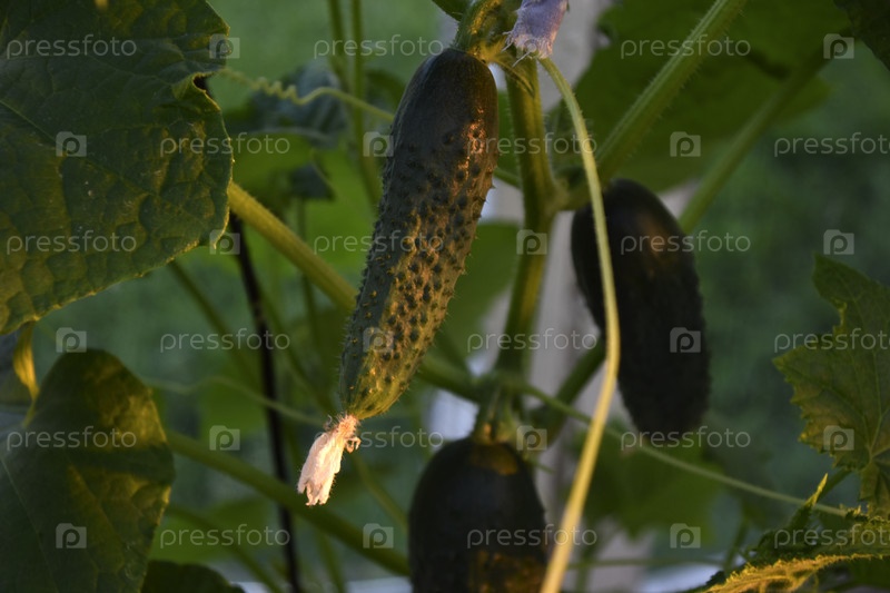 Зеленый огурец на ветке в теплице летом. Зеленый огурец. Выращивание огурцов