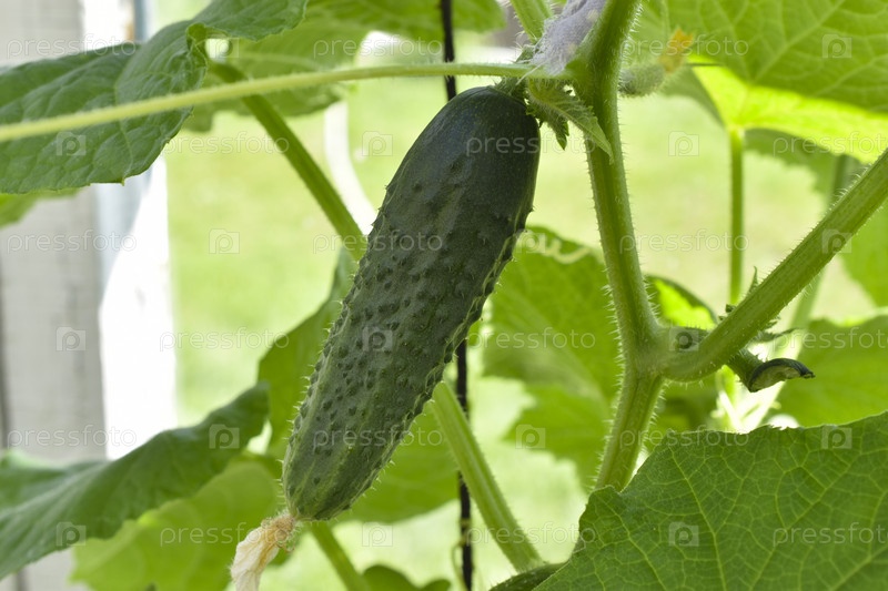 Зеленый огурец на ветке в теплице летом. Зеленый огурец. Выращивание огурцов