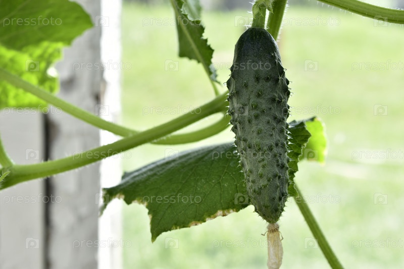 Зеленый огурец на ветке в теплице летом. Зеленый огурец. Выращивание огурцов