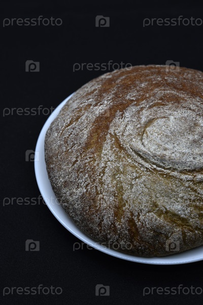 Буханка черного ржаного хлеба на тарелке. Вкусный черный хлеб