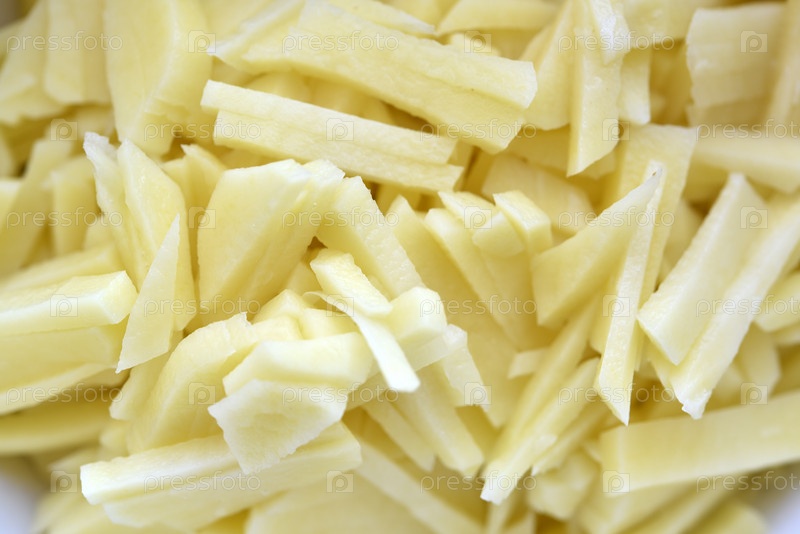 Нарезанный картофель крупным планом. Свежий картофель. Картофельные дольки