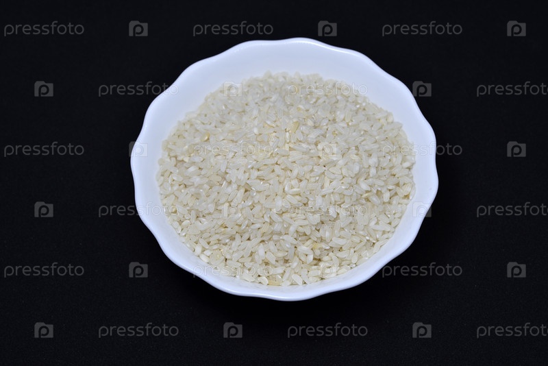 Очищенный рис в белой тарелке. Пищевой рис. Сухой рис