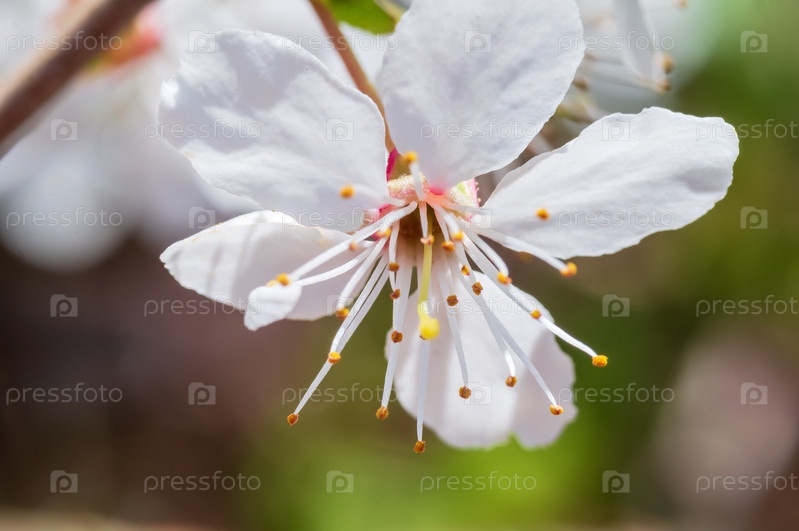 Белый цветок крупным планом. Вишневое дерево. Весна и распустившиеся цветы