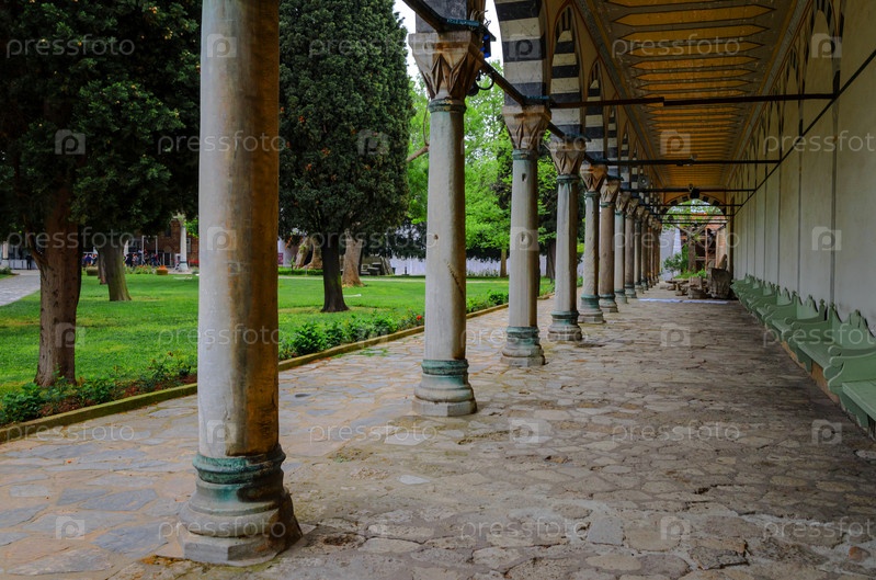 Стамбул, Турция - 05 марта 2018 г.: Великолепно украшенные здания в знаменитом дворце Топкапы (Topkapı Sarayı), главной резиденции и административной штаб-квартире османских султанов в весенний день