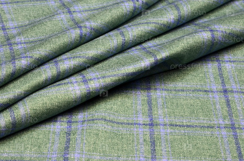 Ткань костюма, клетка зеленого и синего цвета из шелка и кашемира