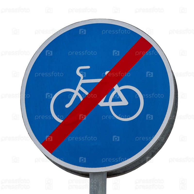Синий дорожный знак запрещает езду на велосипеде, изолированный на белом фоне