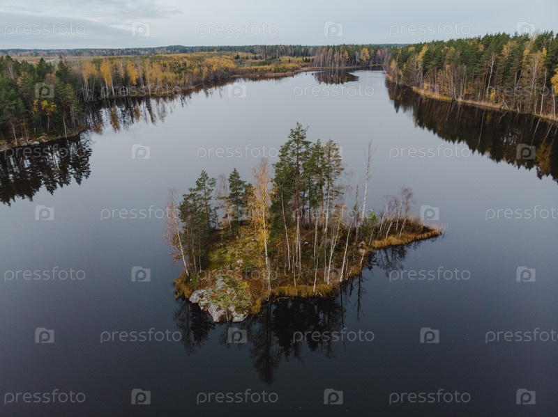 Остров в озере на фоне осеннего леса