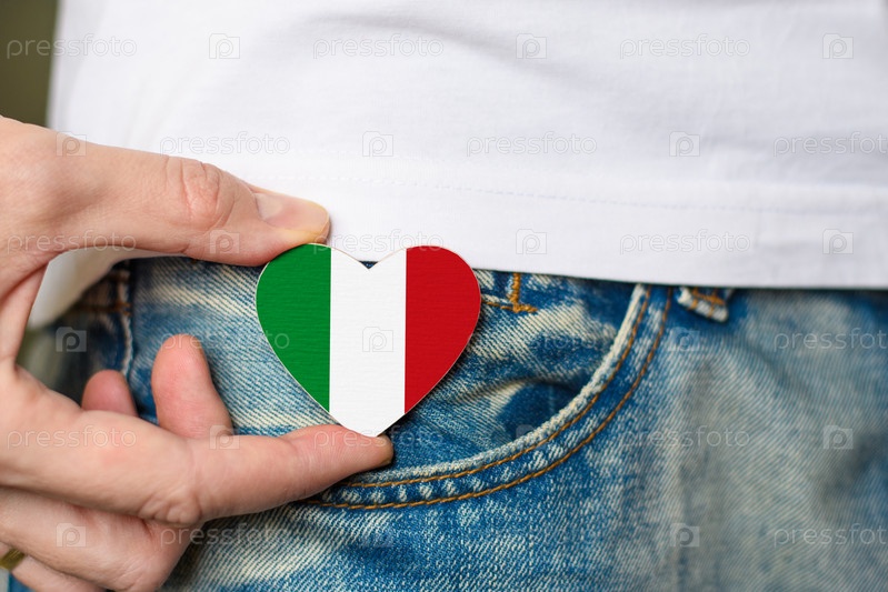 Патриот Италии! Деревянный значок с флагом Италии в форме сердца в мужской руке