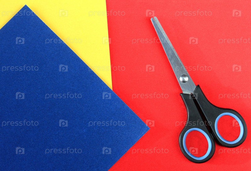Листы цветной бумаги и ножницы с копией пространства