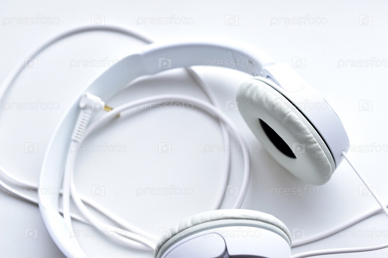 Белые стереонаушники любителя музыки на белом фоне
