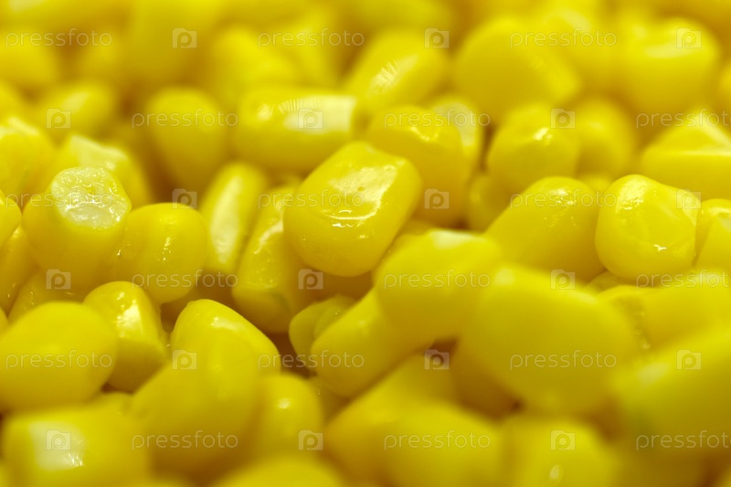 Консервированная кукуруза крупным планом. Зерна желтой сочной кукурузы. Фон кукурузных зерен