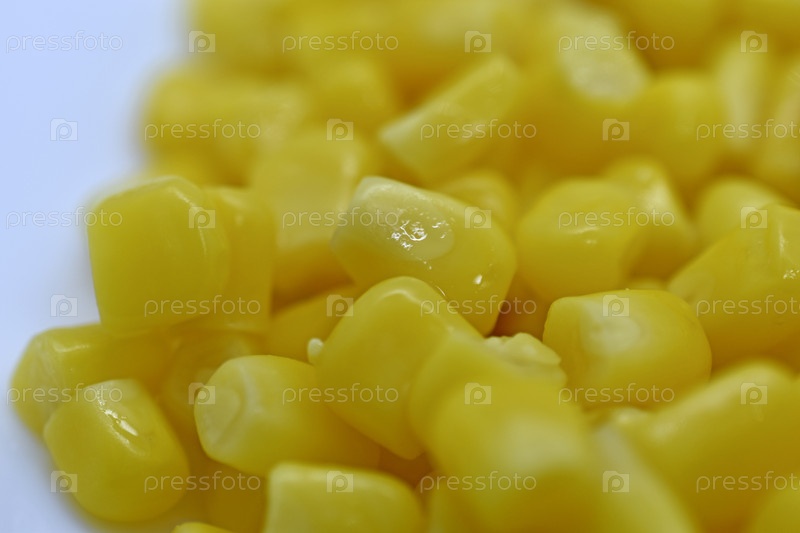 Консервированная кукуруза крупным планом. Зерна желтой сочной кукурузы. Фон кукурузных зерен