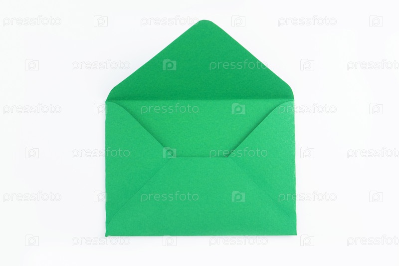 Зеленый экологический конверт, ремесло, изолированный на белом фоне. Коммуникация и коммуникационная концепция, экология и вторичное использование