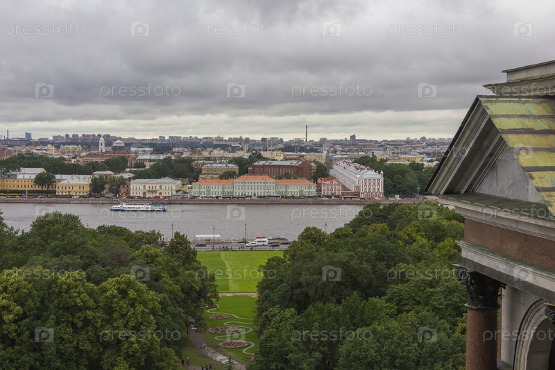 Вид с колоннады Исаакиевского собора в Санкт-Петербурге, Россия, скульптура на крыше собора