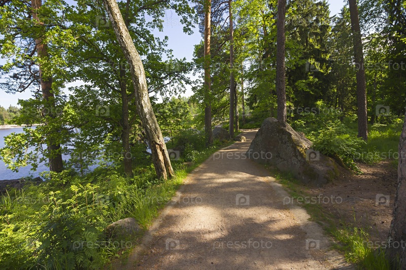 Вид на тропинку в парке Монрепо (Государственный историко-архитектурный и природный музей-заповедник) в Выборге, Россия