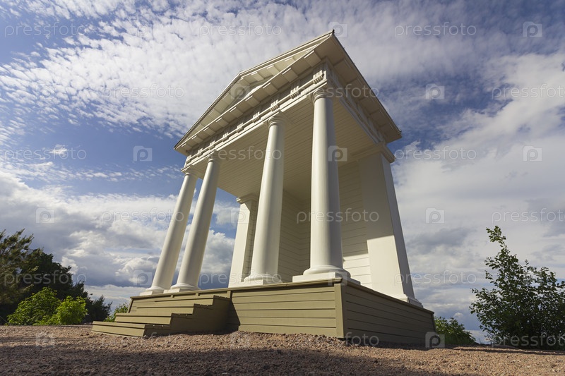Вид на павильон Храм Нептуна в парке Монрепо (Государственный историко-архитектурный и природный музей-заповедник) в Выборге, Россия