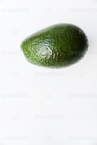 Зеленый плод авокадо на белом фоне. Сочные плоды авокадо крупным планом