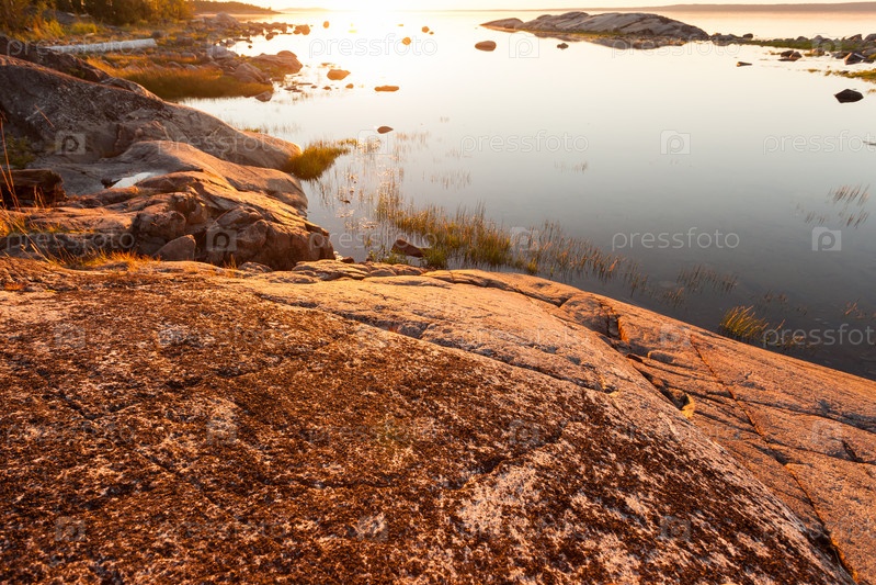 Закат на маленьком красивом озере. Карелия, Россия