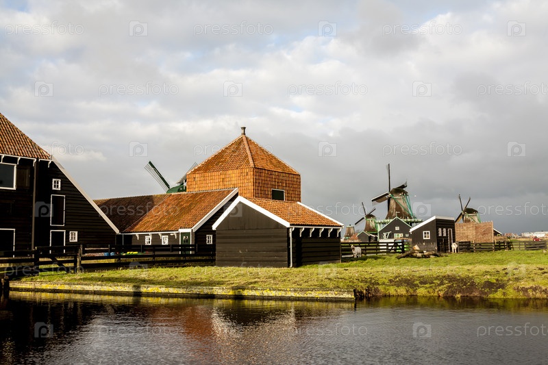 Зандам, Нидерланды - 10 декабря 2009 г.: Заансе Сханс - музей под открытым небом в городе Заандам, Европа