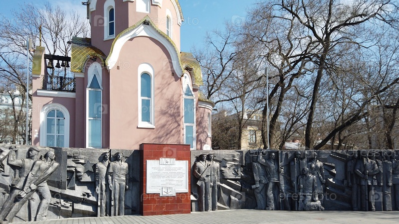Владивосток, Приморский край - 25 марта 2019 г.: Церковь-часовня Святого Андрея - первая достопримечательность города