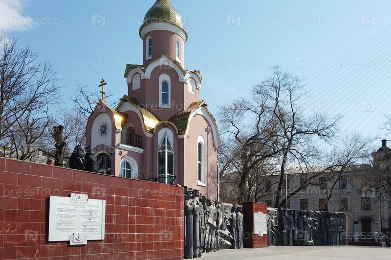 Владивосток, Приморский край - 25 марта 2019 г.: Церковь-часовня Святого Андрея - первая достопримечательность города