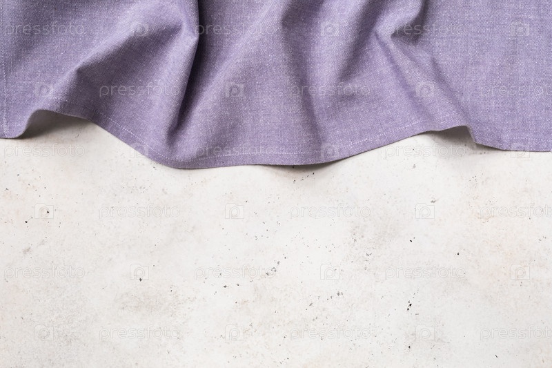 Фиолетовая скатерть в верхней части стола с копировальным пространством внизу, пищевой фон