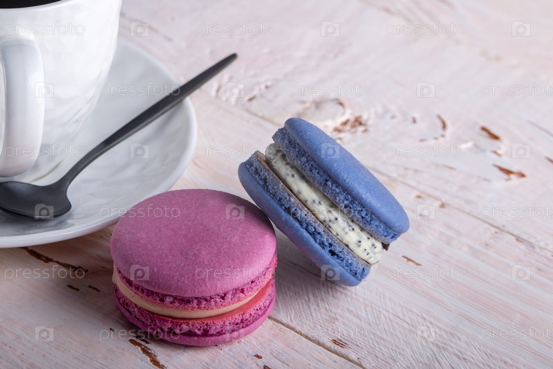 Два миндальных миндальных печенья крупным планом на светлом деревянном фоне